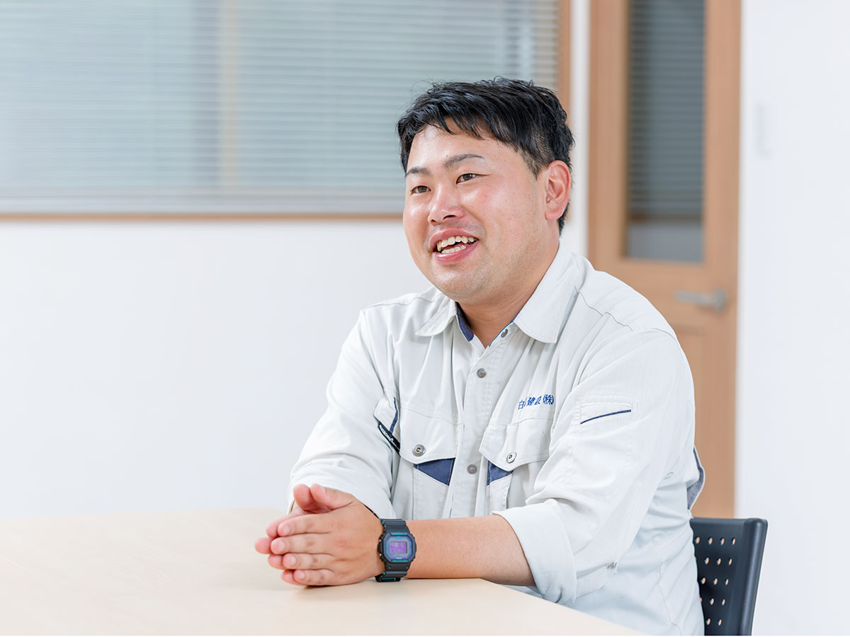 私は2013年に入社し、12年目になります。入社のきっかけは、地元で長年建設事業を展開している企業として以前から社名を知っていたこと、そして地域の方々の目に留まり、記憶に残る「ものづくり」に携われる点に強く魅力を感じたからです。自分の手がけた仕事が地域に形として残るというのは、大きなやりがいにつながると感じ入社を決意しました。